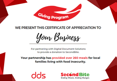 With every Canon Copier and Sharp Copier that you buy, DDS Group will donate 260 meals via the DDS Giving Program. This food programs help our most vulnerable Australians including families in crisis, elderly and low income people, refugees and asylum seekers, homeless people, indigenous Australians and students.