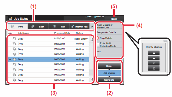 (1) Tap [Change Job Priority] and tap a Change Priority key.