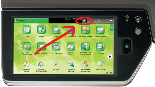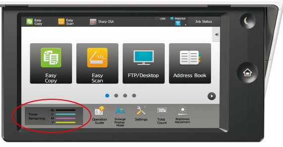To check your toner level of the current Sharp range of photocopiers, the levels are conveniently displayed on the screen (pictured).