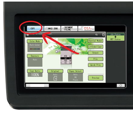 Tap [MFP STATUS] as circled below.
